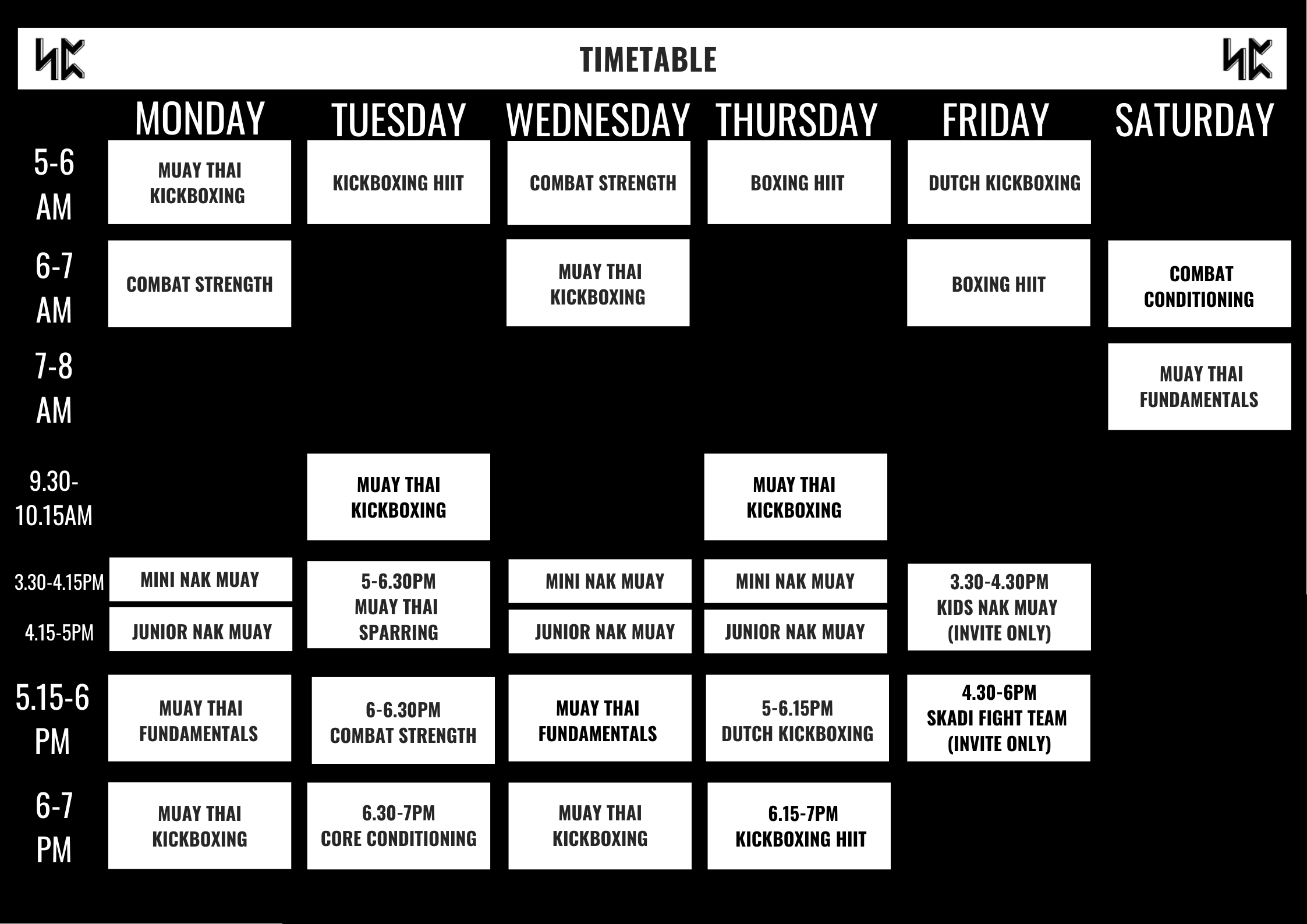 Skadi offers open timeslots for individuals interested in bagwork or weight training, which can be utilized before, during, or after classes.